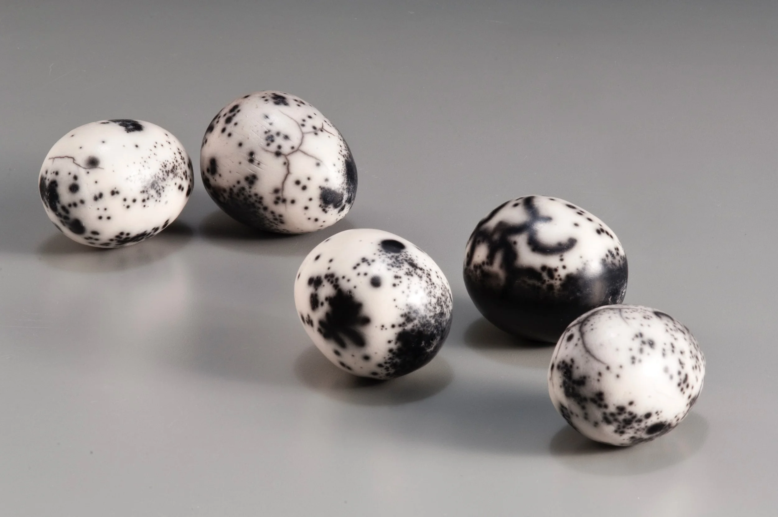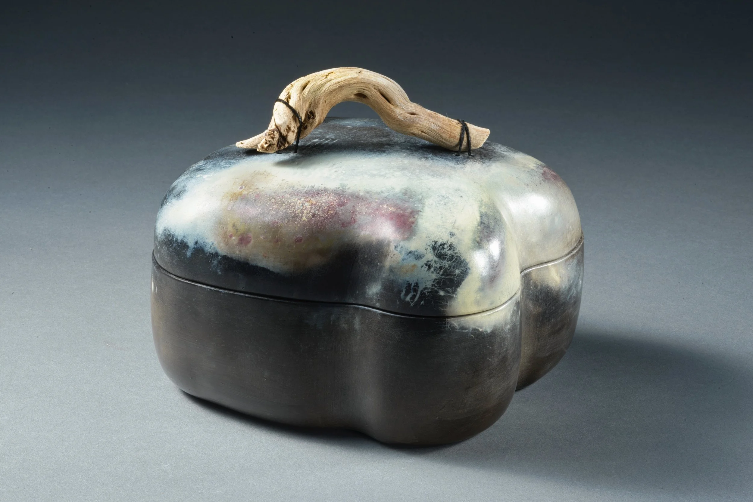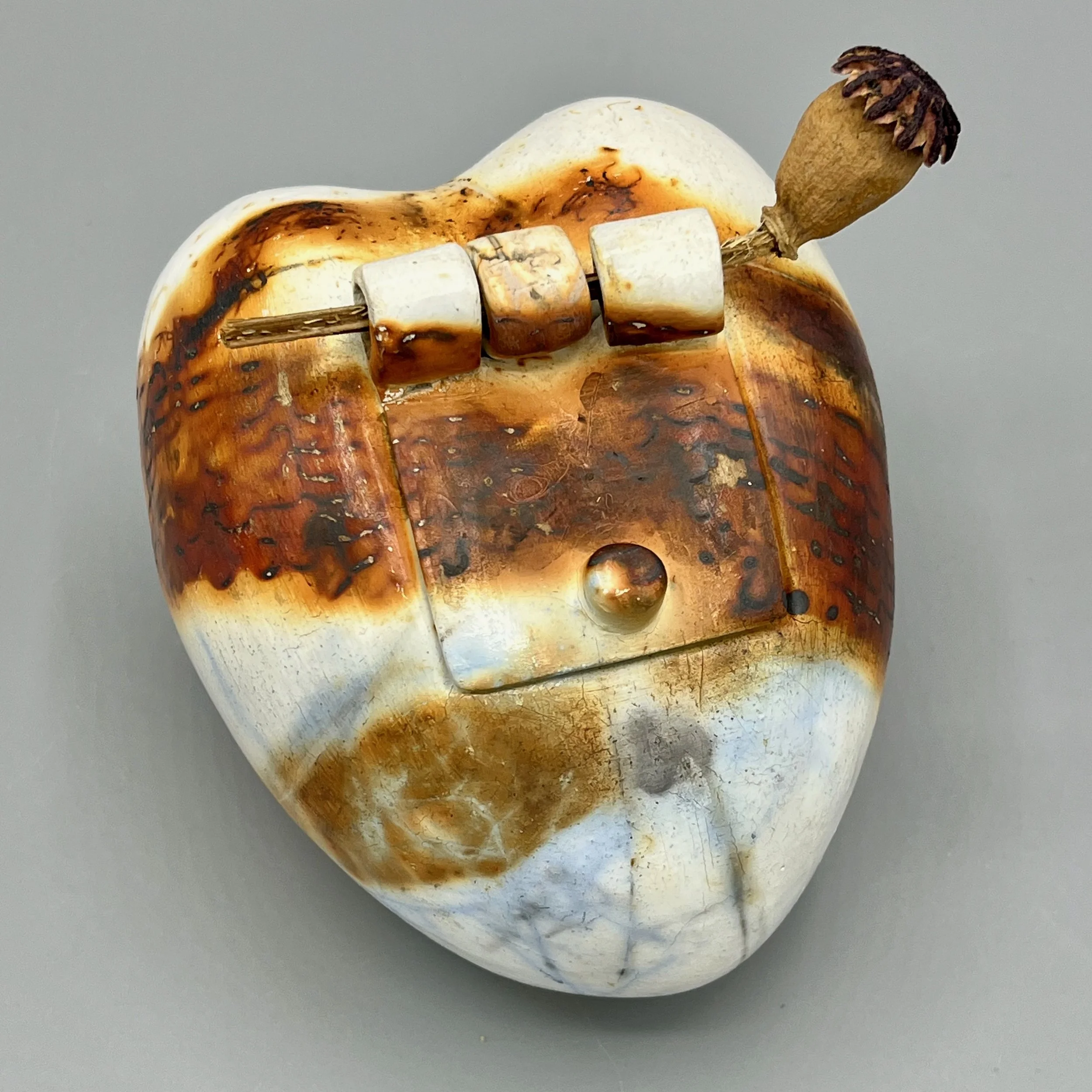 One of my favorite things to make from clay are simple pinched forms. Working a single ball of clay into a finished pot is deeply satisfying and the pot will forever fit and feel wonderful in my hands. Sometimes I join 2 pinch pots to make a closed form that then gets paddled into another shape altogether. I will frequently fire these pots using low-fire, naked (no glaze) techniques - such as pit, obvara, naked raku and saggar firing - after which I may adorn with thread, beading, woven vines, and other found objects.